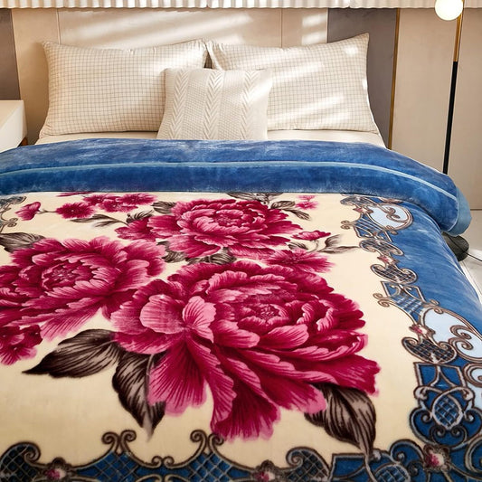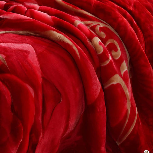 Queen Size Red Rose Korean Mink Heavy, Fleece Plush, 2 Ply Reversible Raschel Bed Blanket