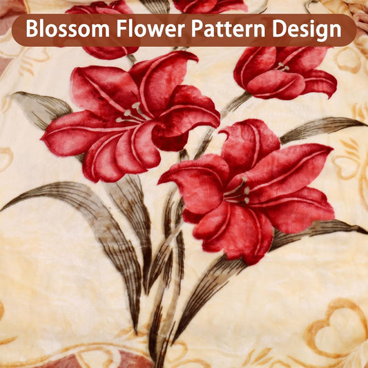 10 LB Korean Heavy Plush 2 Ply Mink Blankets with Ultra-Warm Red Floral Design Queen-Sized