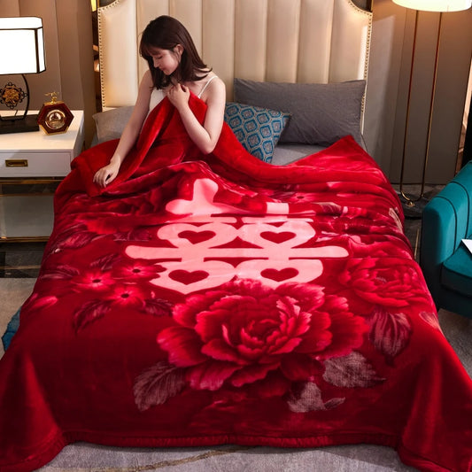 Queen Size Red Heart Korean Mink Heavy, Fleece Plush, 2 Ply Reversible Raschel Bed Blanket