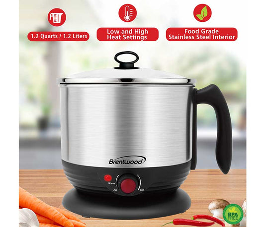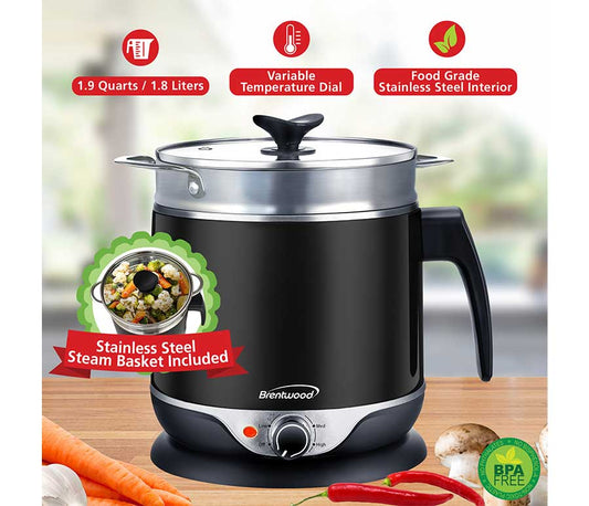 1.9 QT Brentwood Cordless Electric Hot Pot Cooker & Food Steamer