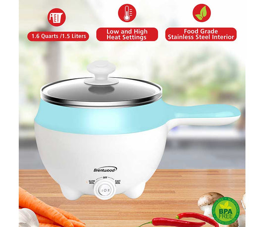 1.6 QT Blue Electric Hot Pot Cooker & Food Steamer