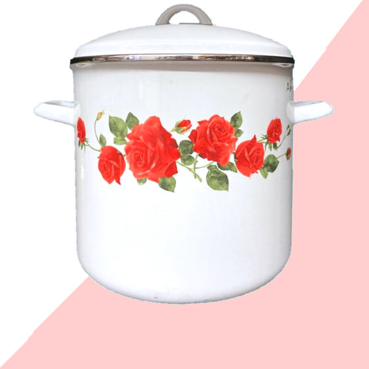 12 QT Rose Enamel Stock Pot with Lid