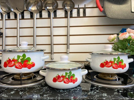 6 PC Strawberries Stock Pot Enamel