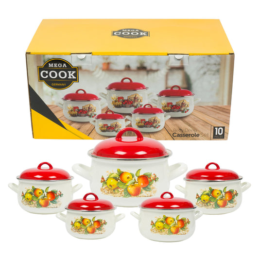 10 PC Apple Enamel Stock Pot Set