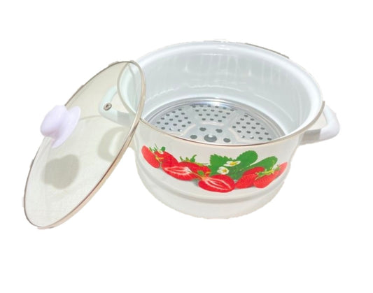 8 PC Strawberry Stock Pot Enamel With Steamer