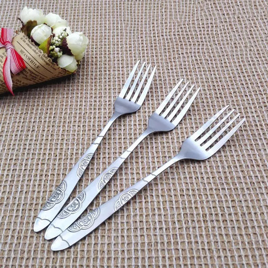 12 PC Wavy Cloud Design Stainless Steel Silver Dinner Fork
