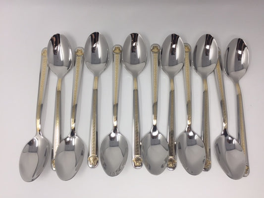 12 PC Greek Design Dinner Spoon With Gold Handle
