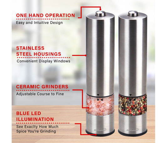 Brentwood Electronic Salt & Pepper Mills Adjustable Ceramic Grinders