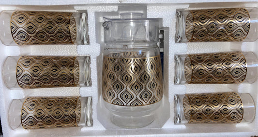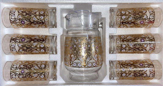 7 PC Gold Design Set with Glass Pitcher and Cups
