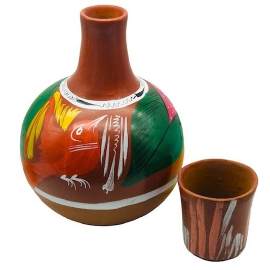 3.6L Mexican Clay Tumble Up Bedside Vessel Hand Painted Botellon de Barro Agua