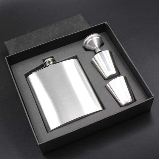 8 Oz Stainless Steel Hip Flask Set In Black Gift Box