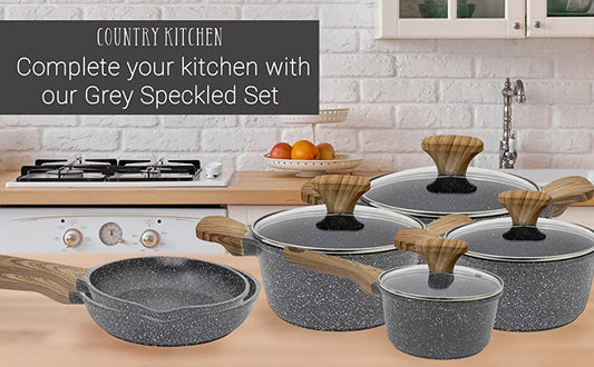 10 PC Gray Die Casting Marble Casserole & Fry Pan Set