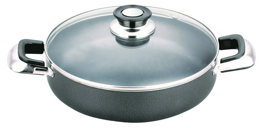 12" Low Pot Non Stick Heavy Gauge With Glass Lid