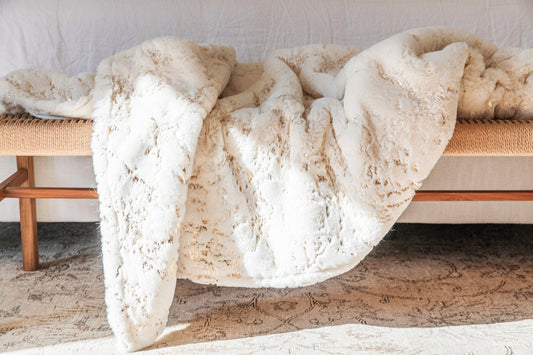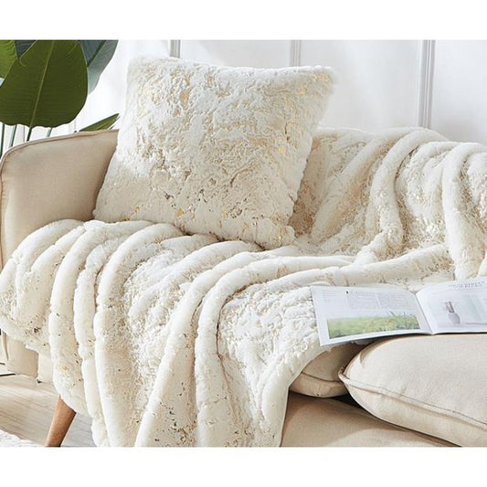 Golden Faux Fur Glow Fluffy Extra Soft Shimmery Foil Illuminating Effect Throw Blanket