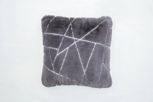 Charcoal Silver Lines Faux Fur Fluffy Extra Soft Throw Pillow