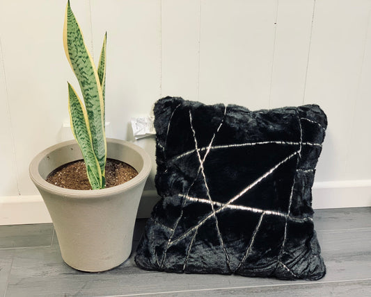 Black Silver Lines Faux Fur Illuminating Effect Throw Pillow