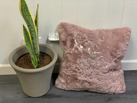 Rose Silver Faux Fur Glow Fluffy Extra Soft Shimmery Foil Illuminating Effect Throw Pillow