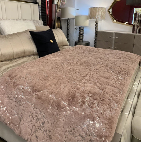 Rose Silver Faux Fur Glow Fluffy Extra Soft Shimmery Foil Illuminating Effect Throw Blanket