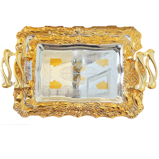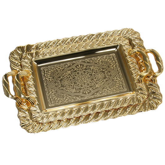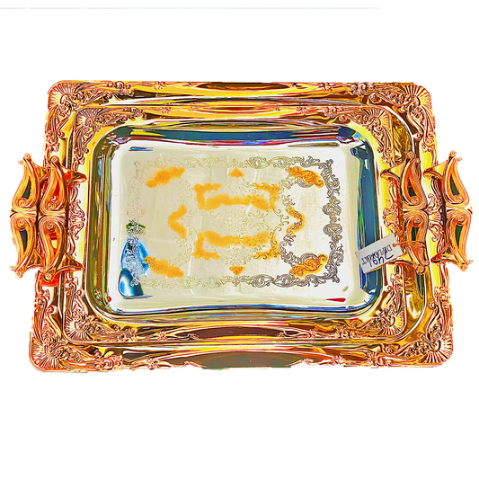 2 PC Luxurious Vintage Royal Gold Serving Tray