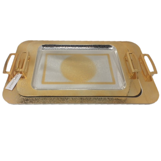 2 PC Royal Gold And Silver Serving tray