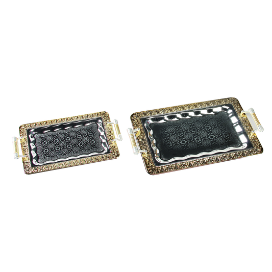 2 PC Traditional Silver And Gold Serving Tray