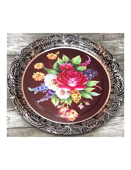 34cm Brown Floral Tray