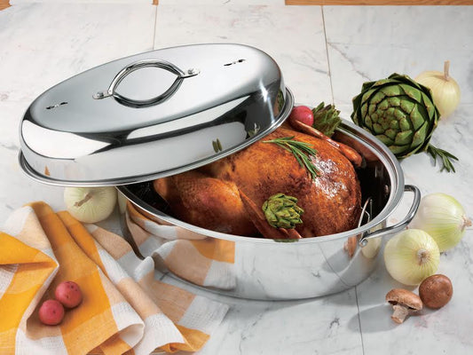 16.5" Stainless Steel Oval Turkey Roaster With Rack & Lid