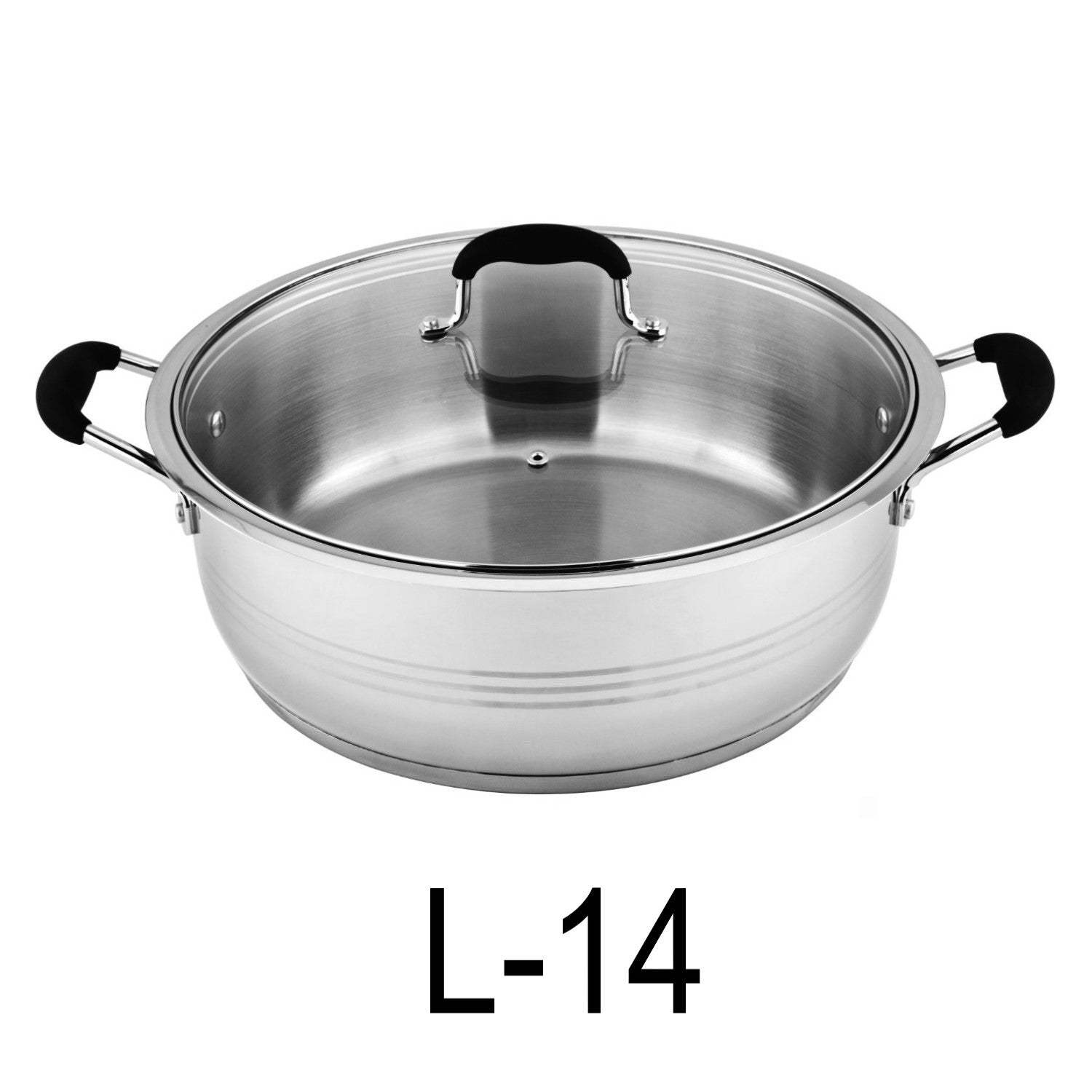 14 QT Stainless Steel 18/10 Induction Low Pot With Silicon Handle