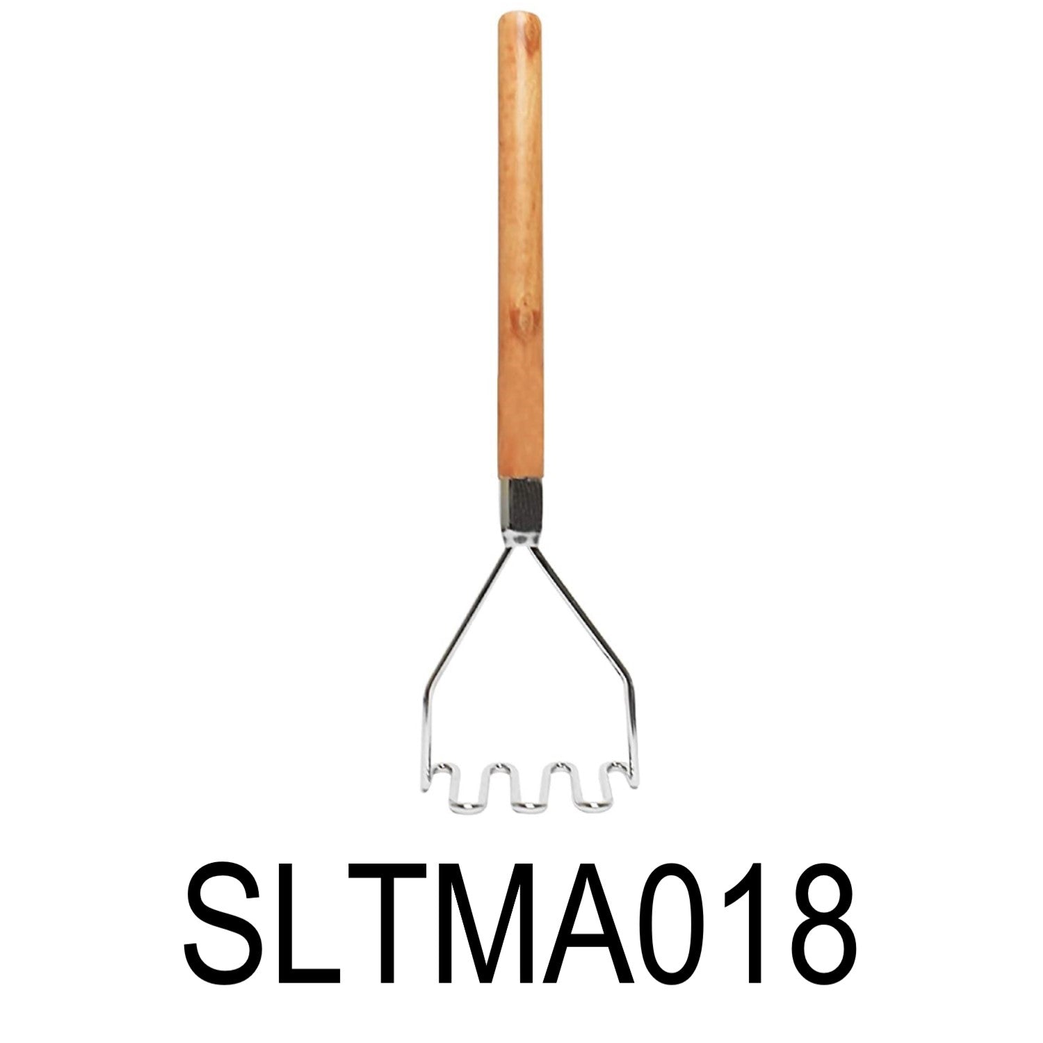 Great for mashing potatoes, berries, and more, square potato masher with wood handle is a staple in any commercial kitchen. Designed with a square-faced zigzagged wire head, this masher allows you to thoroughly mash soft produce with minimal effort. Thanks to its stainless steel construction, this potato masher is easy to clean and will withstand heavy duty use. Built with a long wood handle, this masher provides a comfortable grip and allows you to reach into deep pots.