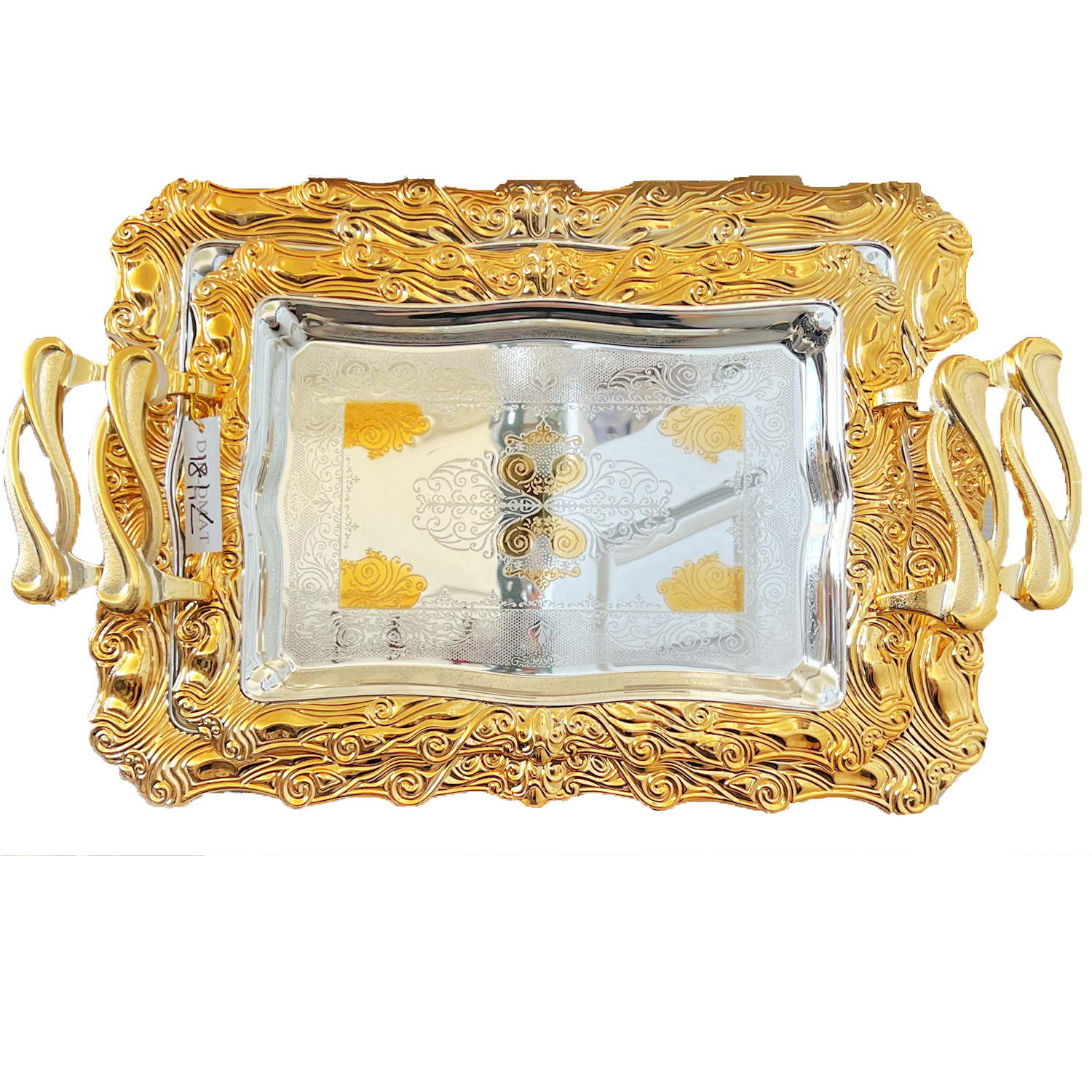 2 PC Greek Elegant Serving Tea Tray Set Twisted Gold Handle