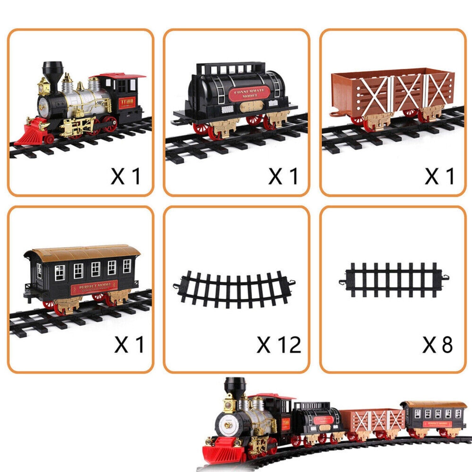 24 PC Classic Train Set With Light Sound Smoke Kids Toy