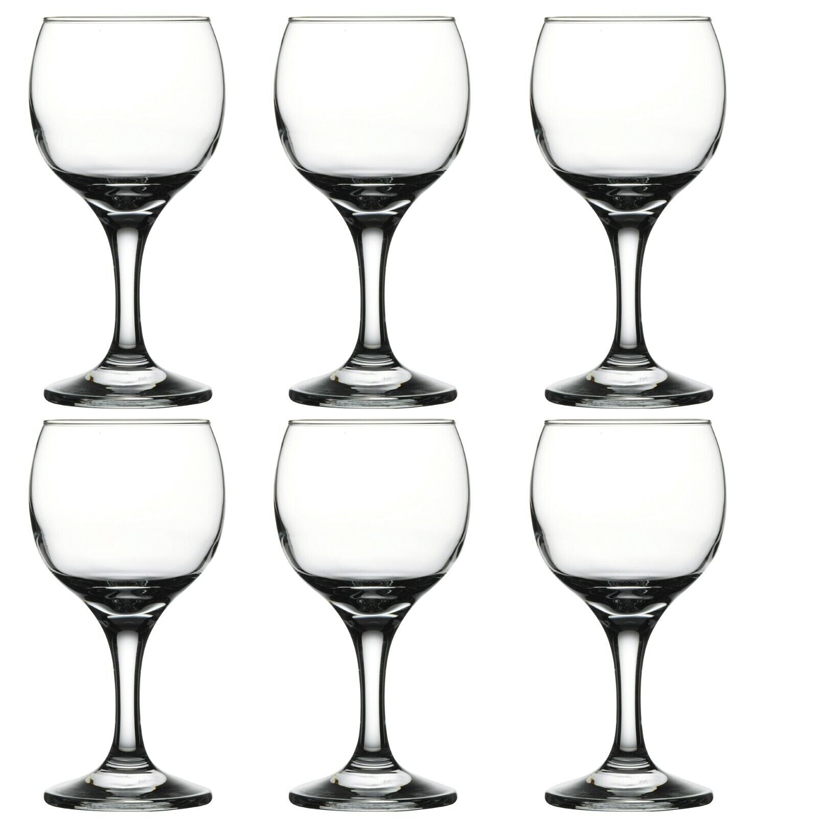Set of 6 clear 12 ounce wine glasses for everyday use, casual dining, parties, and entertaining.