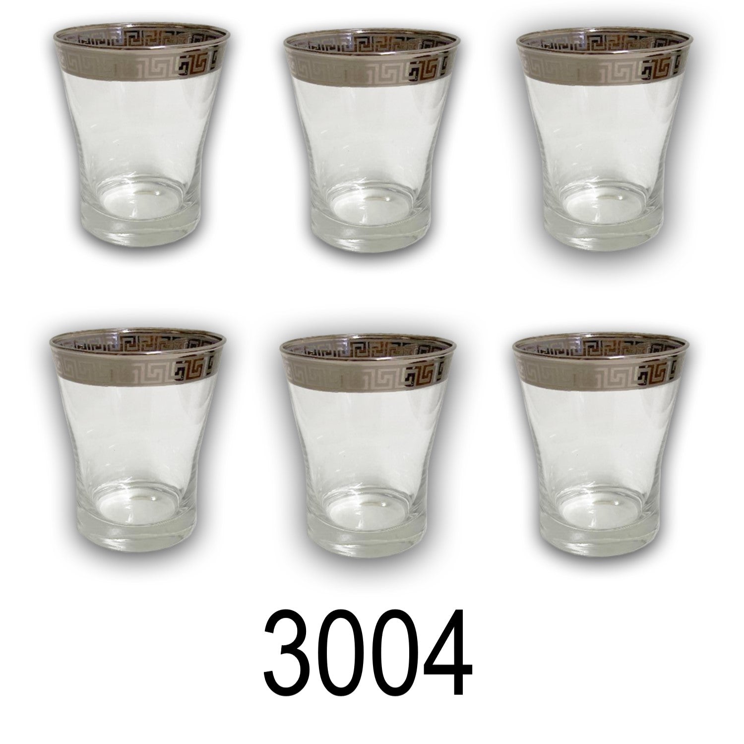 6 PC Short Silver Versace Inspired Design Glass Cups