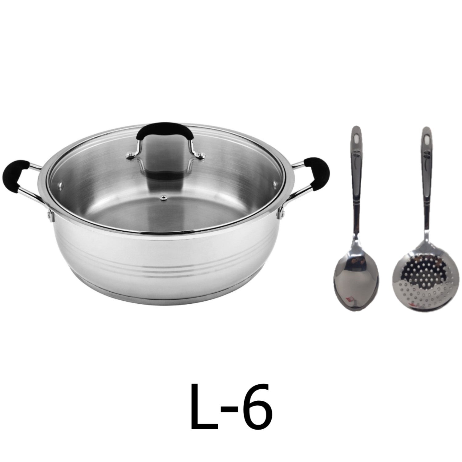 6 QT Stainless Steel 18/10 Induction Low Pot With Silicon Handle