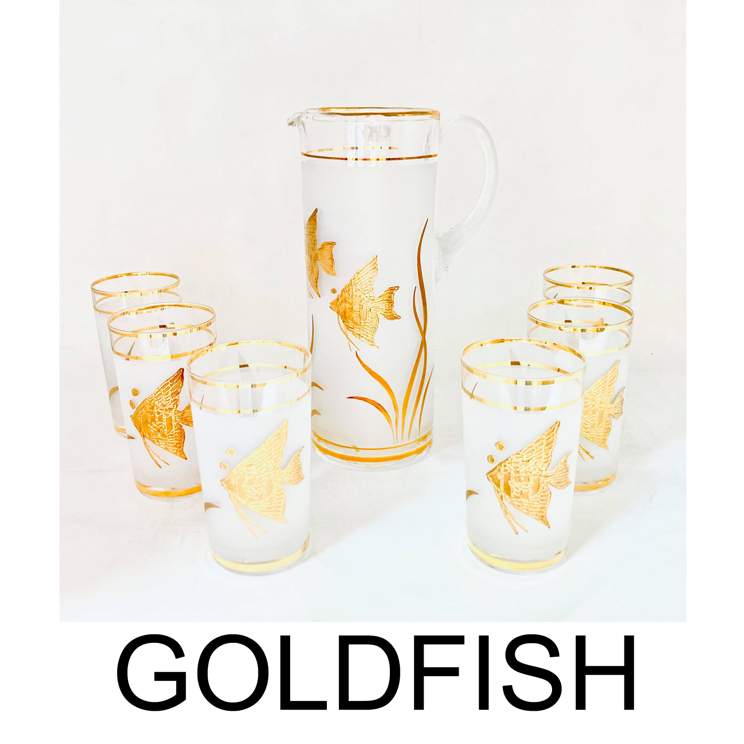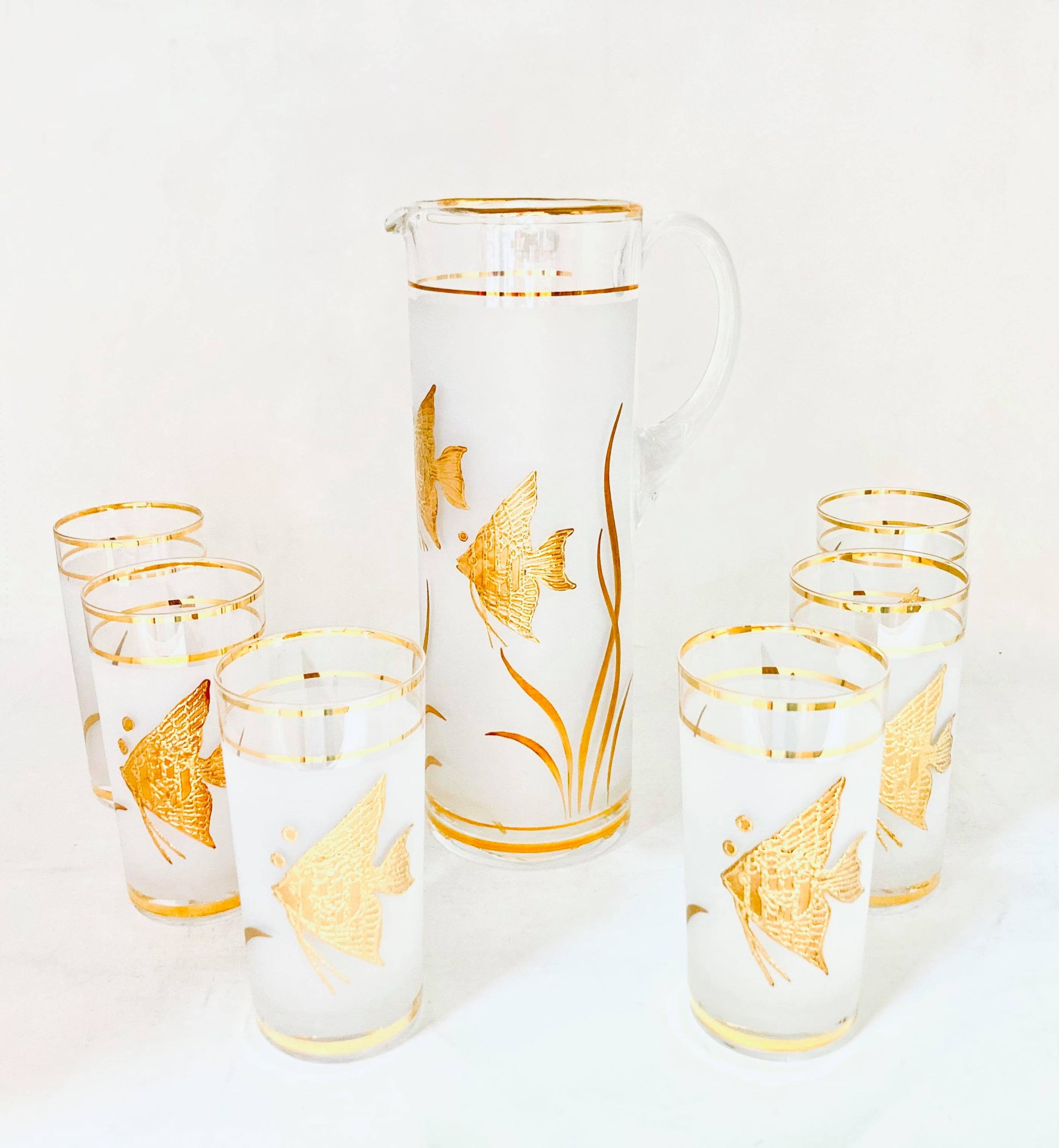 7 PC Angel Fish Glasses Gold Set