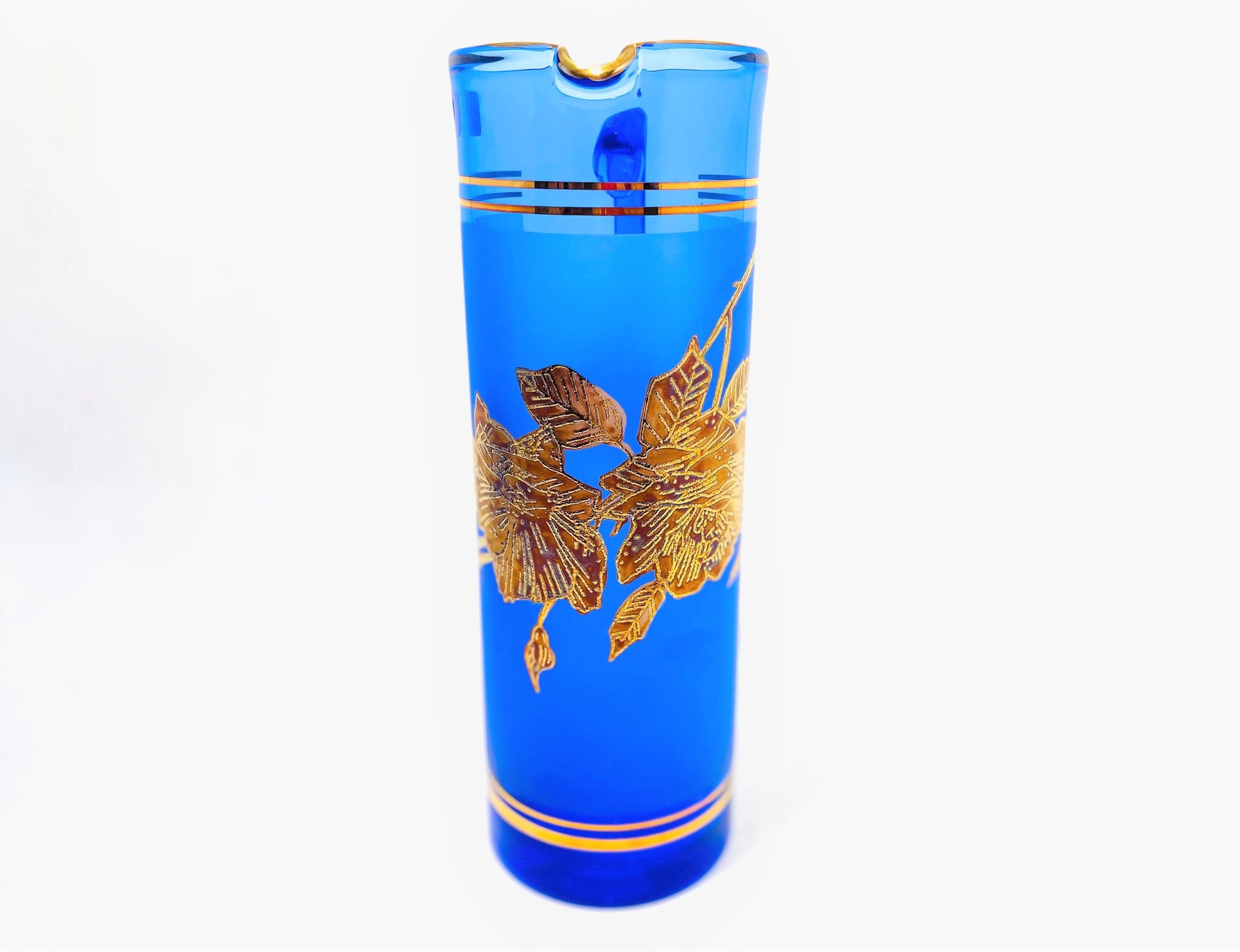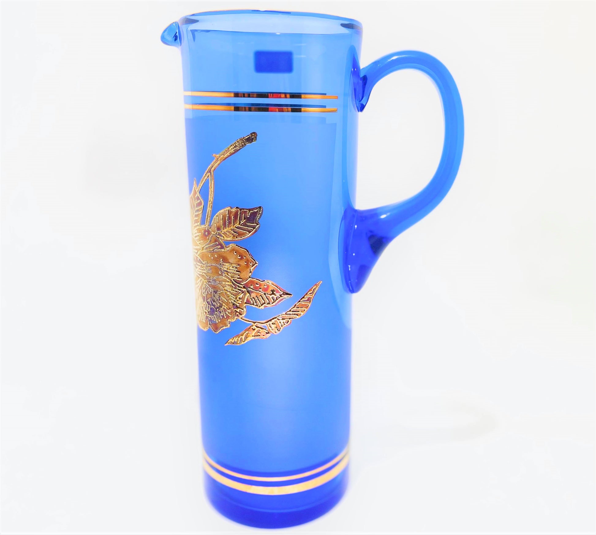 7 PC Leaf Glasses Blue & Gold Set