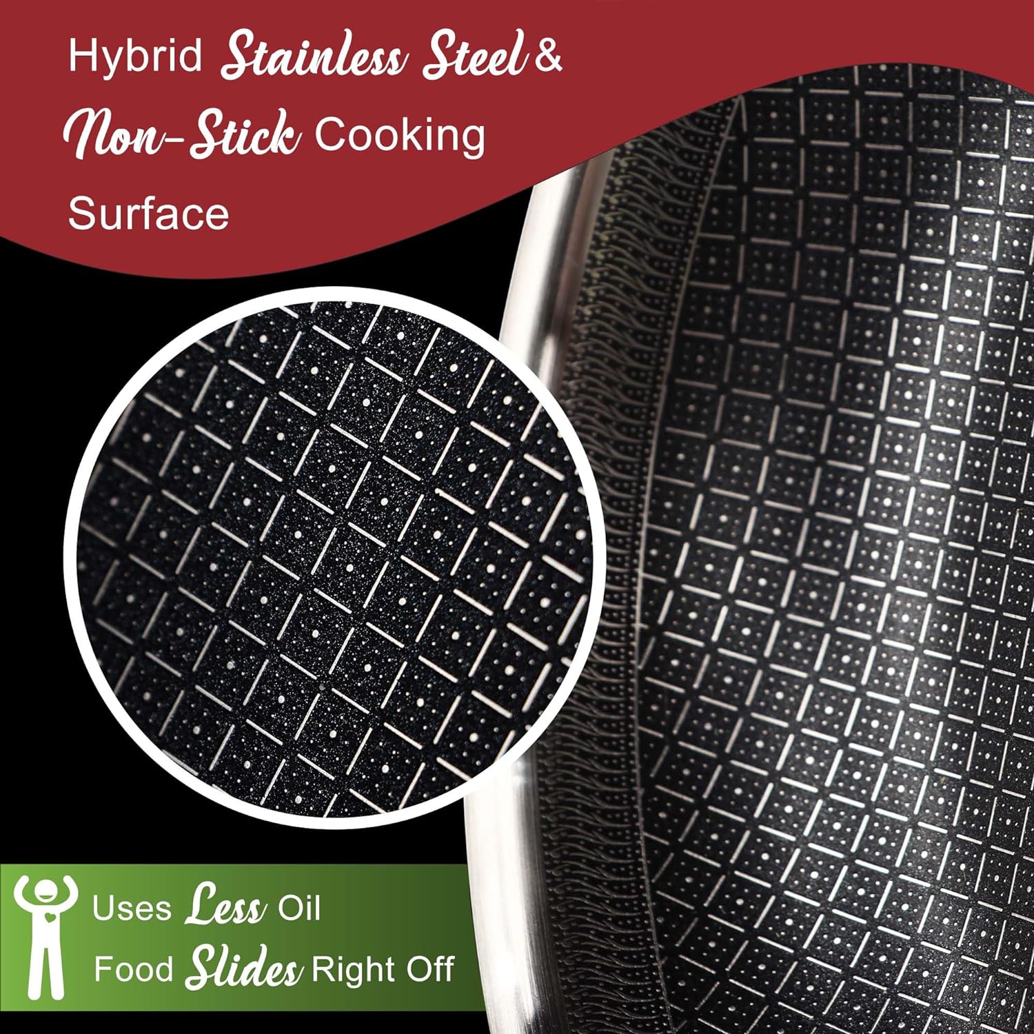 - Use the Brentwood B-FH20 8-inch 3-Ply Hybrid Non-Stick Stainless Steel Induction Ready Frying Pan to fry, boil, sauté, braise and bake up to 570°F. Metal utensil safe thanks to laser etched network of ridges raised above non-stick surface across the pan. Our skillet uses 3 ply construction including an aluminum core sandwiched by stainless steel for durability and fast, even heating. Induction ready base is compatible with any stovetop including gas, electric, induction, and infrared. Easily maneuver the pan with the riveted, stay cool stainless steel handle. Dishwasher safe for incredibly easy clean up.