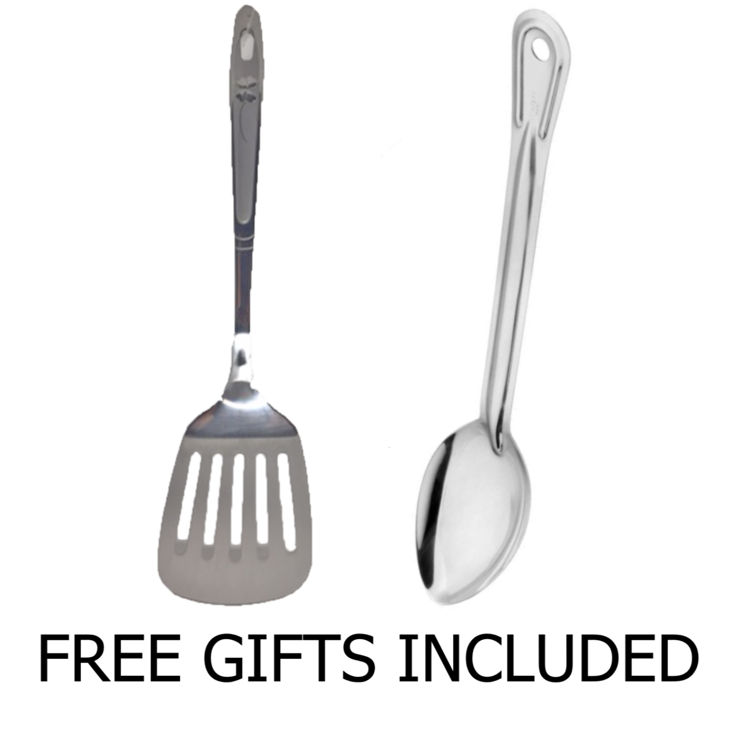 - Material: 3-Ply Stainless Steel with Aluminum Core, Stainless Steel Handle
