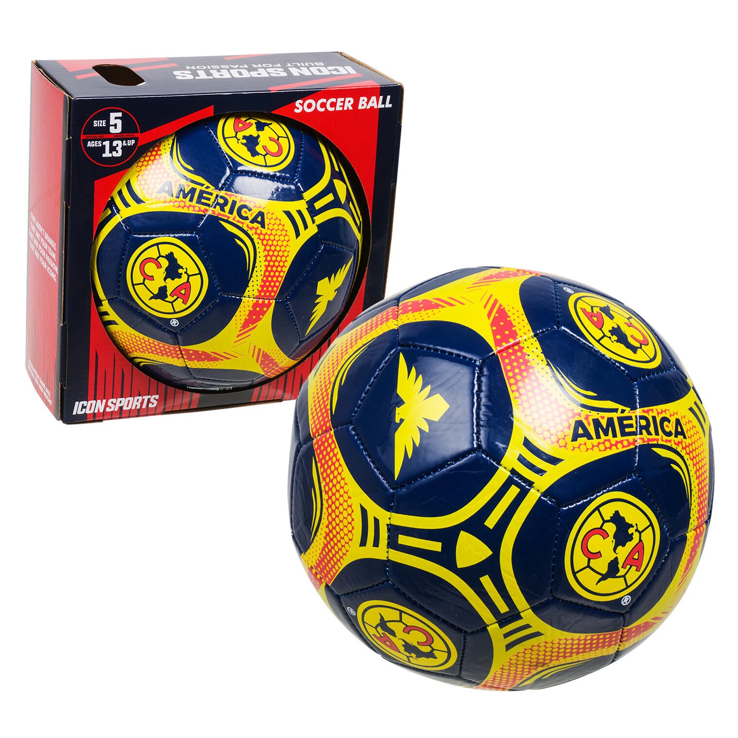 - Play "the beautiful game" with your full "America" pride on display with this officially licensed Club America Team Size 5 Regulation Soccer Ball. Features dual layer backing over 2.5 mm foam and rubber bladder for rugged play construction, and vibrant printed graphics on high-quality patterned PVC featuring Icon Sports' Club America logo and colors for display.