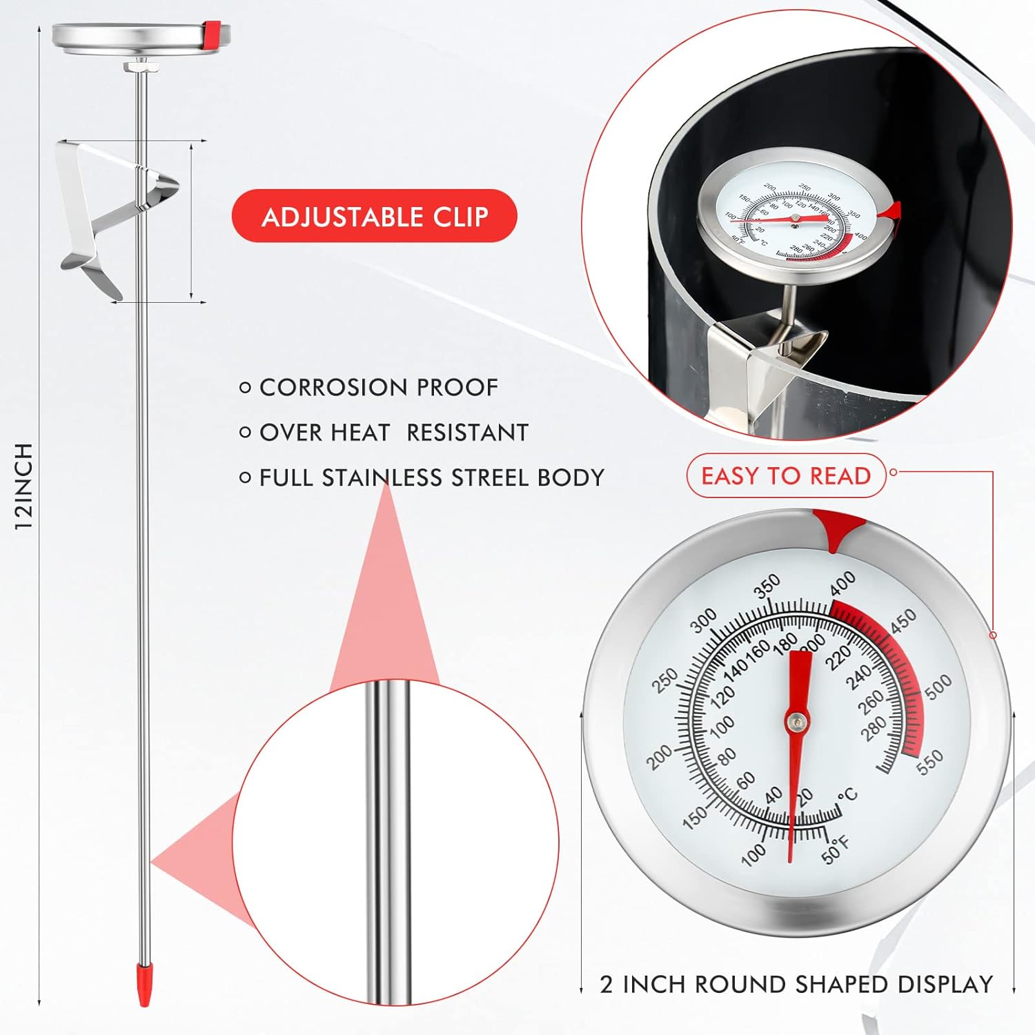 - Easy to Operate: this turkey fryer thermometer is equipped with a stainless steel clamp, which can help you fix the thermometer on your pan or pot while inserting it in hot water or oil, making your hands free and decreasing the risk