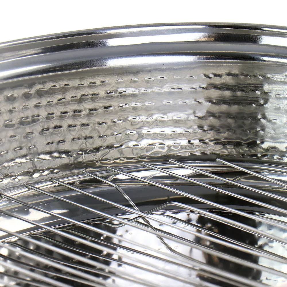 - Create the perfect feast with the Gibson Home Radiance 17.5 Inch Stainless Steel Copper Plated Oval Roaster with Lid and Roasting Rack. Features a vibrant copper plated exterior with a hammered texture. Includes a removable rack for roasting meats and veggies. The stainless steel body provides even heating through for perfect baking. For long lasting quality and care, its recommended to hand wash only. Roast chicken, beef, or pork with veggies and onions for an unforgettable dinner. Includes: One Roaster One Lid.
