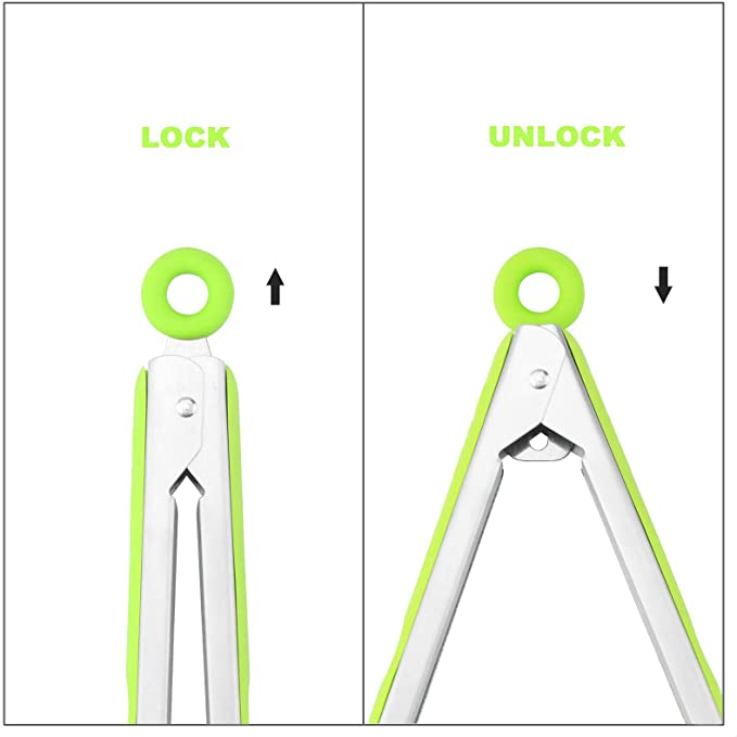 - Easy to Use and Store — Our kitchen tongs have a non-slip ring pull locking mechanism that allows the tongs to remain either closed or open. The ring also doubles as a loop — excellent for hanging and easy storage.