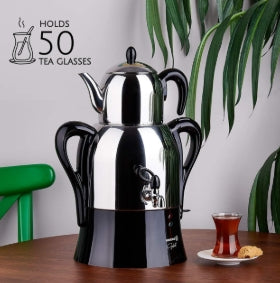 - Allows the serving of at least 50 classic Turkish tea glasses. Permite servir al menos 50 vasos clásicos de té turco.