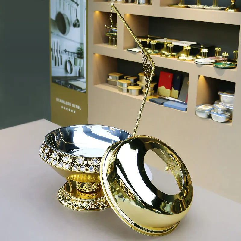 Diamond Design Golden Round Catering Chafing Dish Food Warmer Set