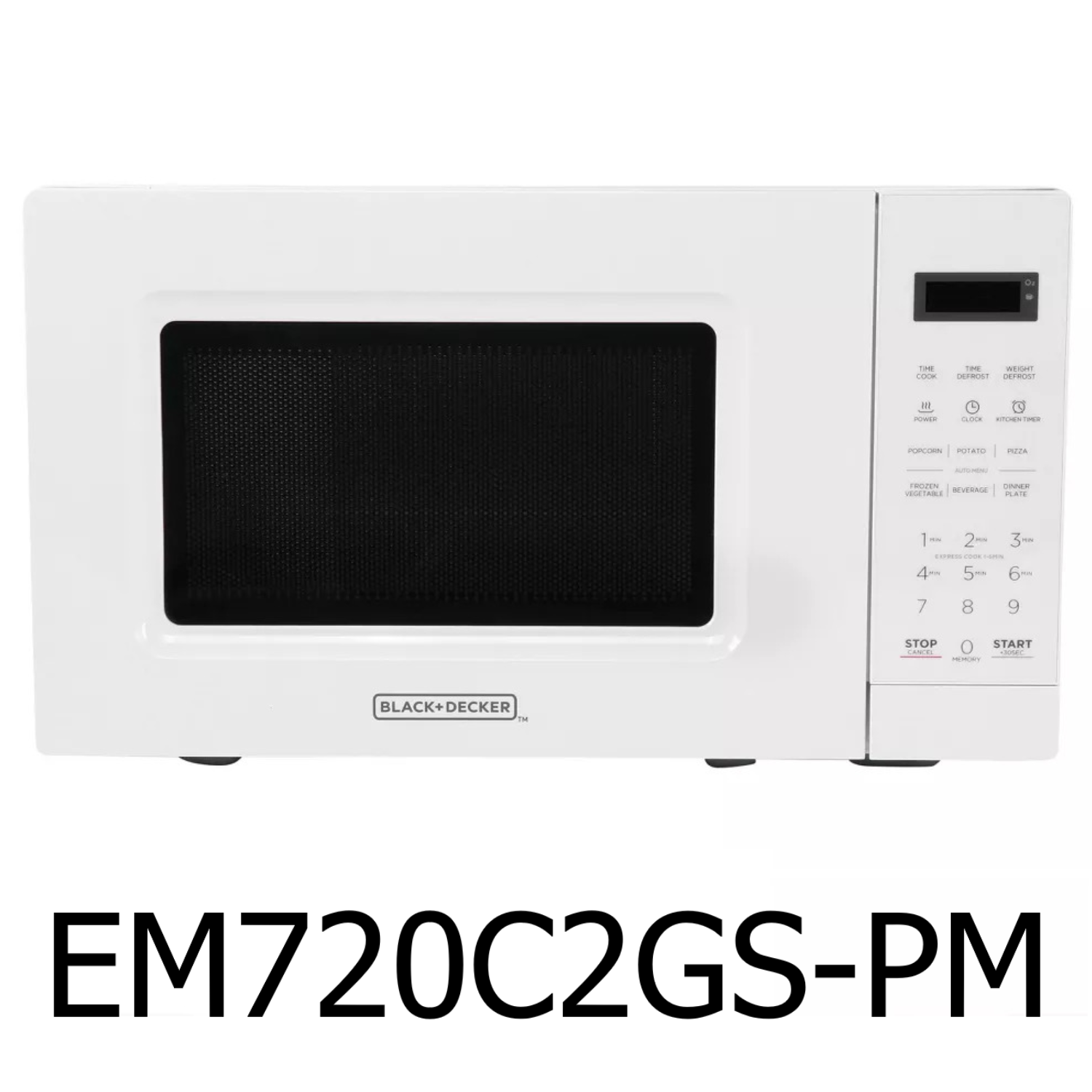 - This professional-style Black + Decker 0.7 Cu Ft LED Digital Microwave Oven features 11 power levels, removable glass turntable and a spacious interior. Optimally cook or reheat six of the most popular food items with the touch of a button. Choose power levels up to 700 watts.The large LED digital display has a clock function and can also display a countdown timer as well as the cooking time remaining. Easily open the microwave with the push-button, heat up food with the 1-6 min express cooking options.