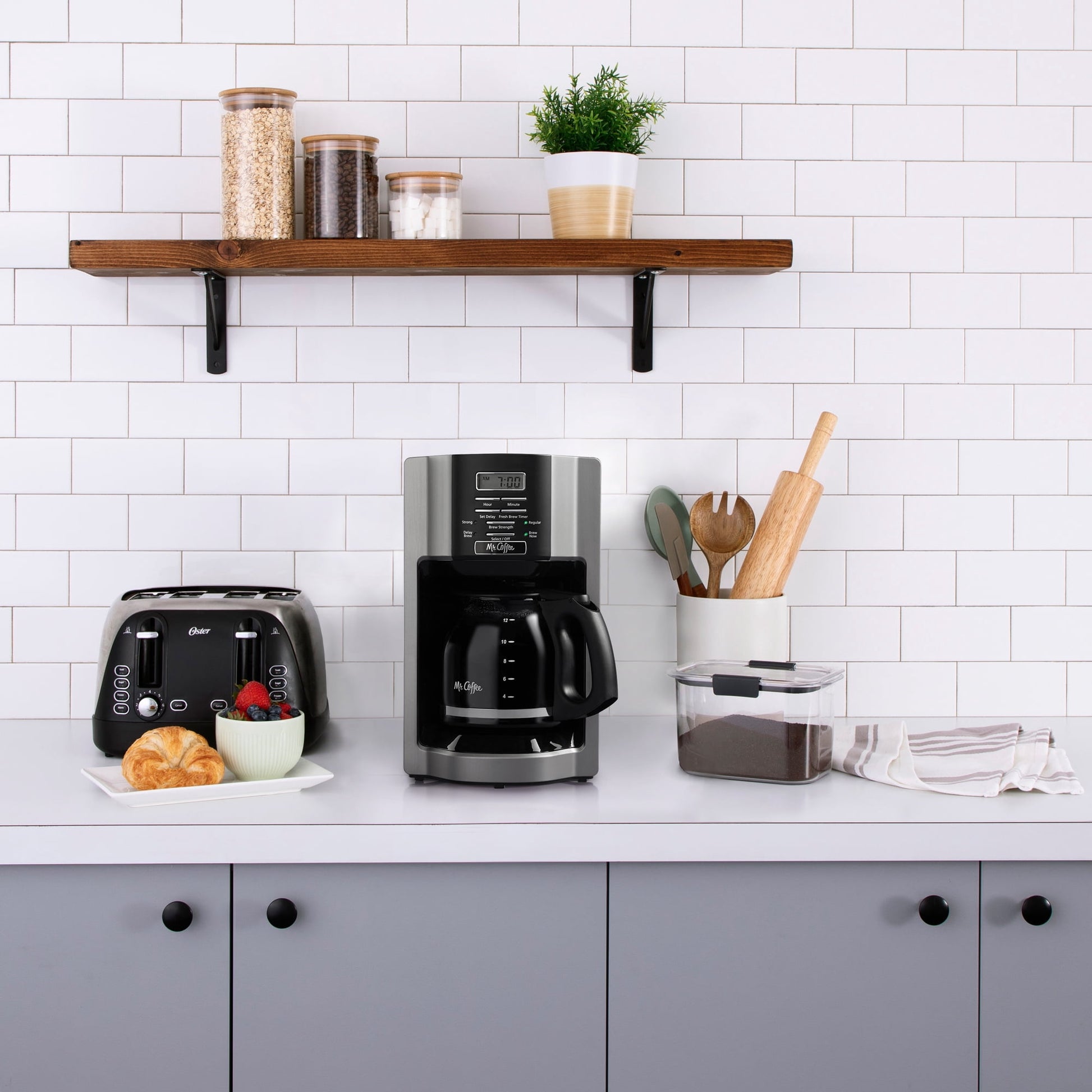 Mr. Coffee 12-Cup Programmable Coffeemaker, Rapid Brew, Brushed Metallic