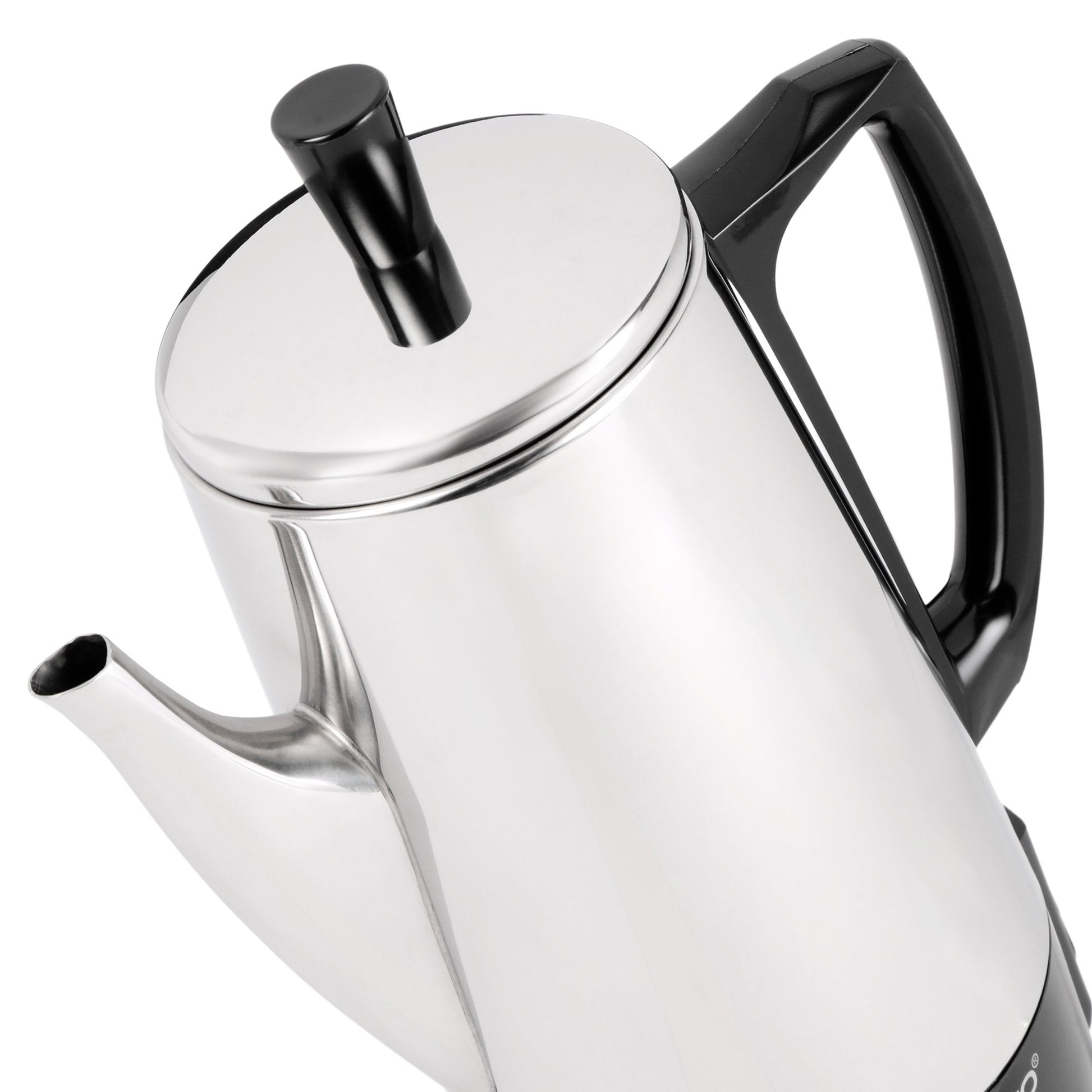 - Luxurious stainless steel, including the filter basket and perk tube.