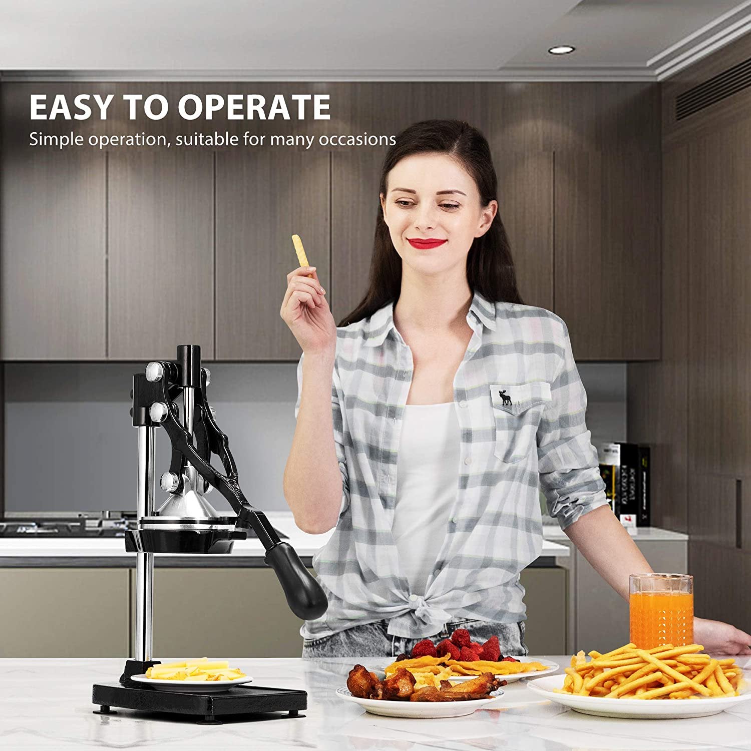 - PURE DELICIOUS JUICE & HEALTH LIFE: Different with an electric juicer machine, our hand press commercial citrus juicer will not rub the rind, so you can enjoy the good taste juice without bitter rind taste. This large commercial juice press extracts every last drop out of oranges, grapefruits, lemons, limes, pomegranates with handy and professional juice press.