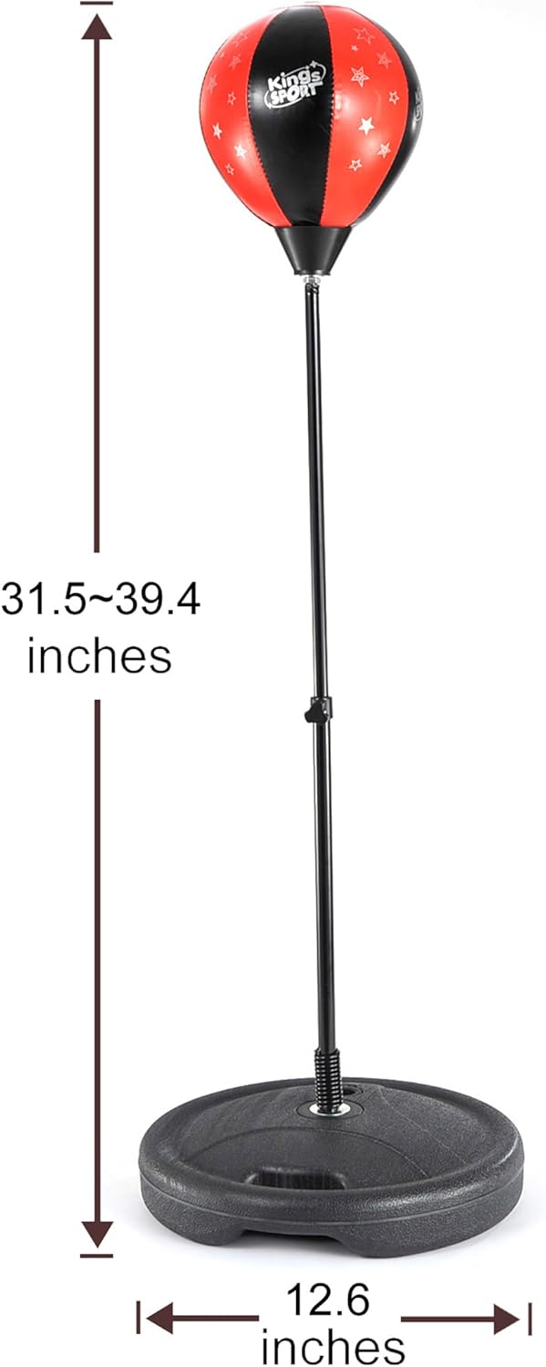 - Adjustable Height of Spring-action standing punching bag- Your children can easily adjust the high from 26.4" to 40" which is so convenient to use for a long period of time and it is a great partner to accompany them growing older and stronger.