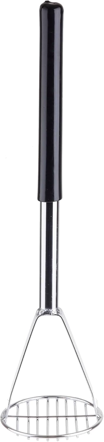 This round face potato masher is made of chrome plated metal. Comes with black texture handle. Round face on this model covers a large surface area, ensuring that potatoes will be mashed as quickly and efficiently as possible.
